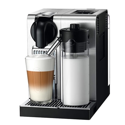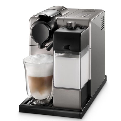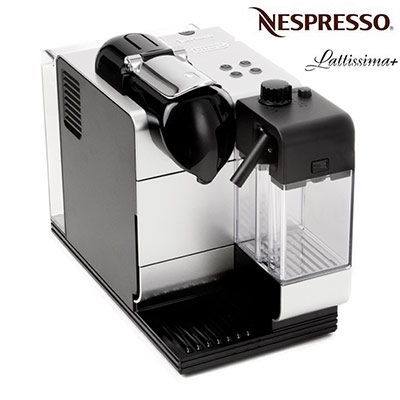 У нас осталась нерассмотренной еще одна серия капсульных кофемашин стандарта Nespresso - DeLonghi Lattissima. Это топовый уровень с соответствующими ценами. Это компактное устройство со встроенным резервуаром для молока (то есть капуччинатор тут не в виде отдельного прибора). Полный набор опций - автоматическая очистка, индикатор количества воды, автоотключение, сниженный уровень шума, контейнер на 11 использованных капсул, регулировка высота подставки для стакана, выбор объема порции (эспрессо, лунго, капучино, латте-макиято). Доступно несколько цветов корпуса.