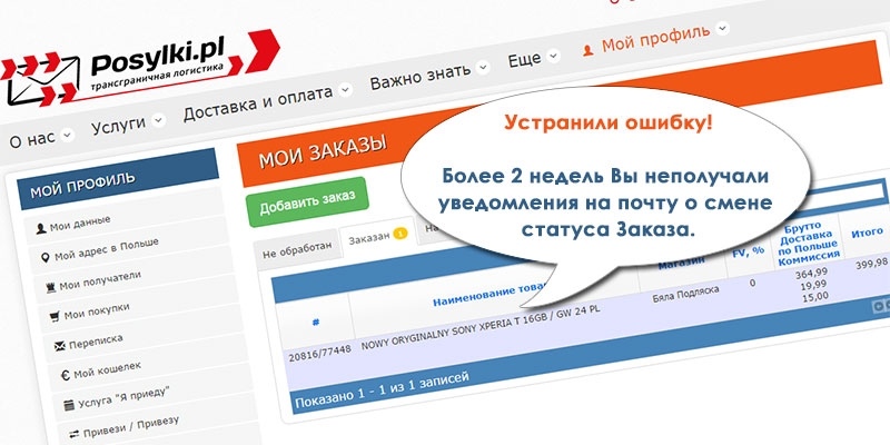 Сегодня, благодаря сигналу от нашего клиента Сергея из Бреста, была найдена и устранена ошибка, из-за которой многие клиенты не получали уведомления на электронную почту о смене статуса заказа.